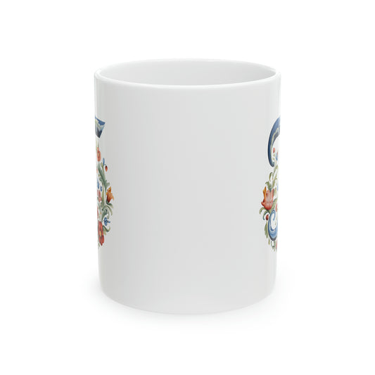 U Norwegian Rosemaling Mug Norway Alphabet Coffee Mug 11oz