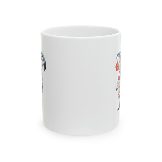 D Norwegian Rosemaling Mug Norway Alphabet Coffee Mug 11oz