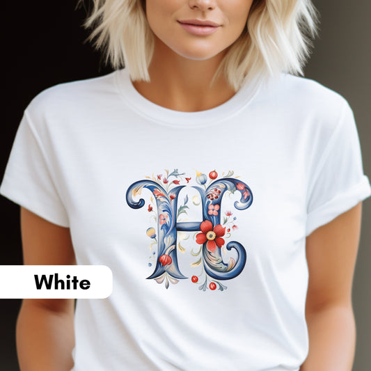 H Monogram T-Shirt β Rosemaling Norwegian Letter Tee