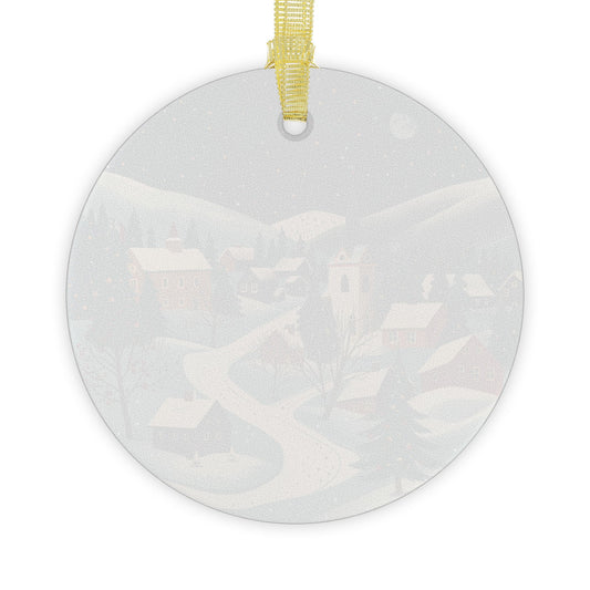 Snowy Village Glass Ornament Elegant Christmas Decoration, Holiday Gift, Nordic Winter Scene Decor