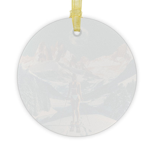 Winter Ski Scene Glass Ornament Fun Christmas Decoration, Unique Holiday Gift, Nordic Adventure Decor