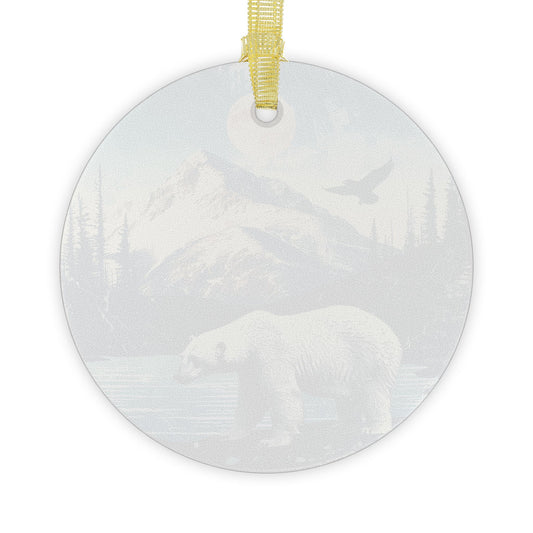 Norwegian Glass Christmas Ornament Polar Bear and Mountain Scene, Beveled Glass, Elegant Holiday Decor Gift