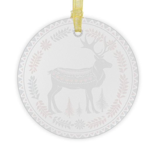 Norwegian Glass Christmas Ornament Nordic Reindeer Design, Beveled Glass, Elegant Holiday Decor Gift