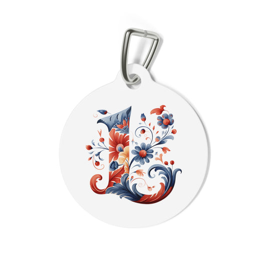 L Rosemaling Alphabet Pet Tag Rosemaling Norwegian Personalized Pet Tag