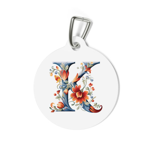 K Rosemaling Alphabet Pet Tag Rosemaling Norwegian Personalized Pet Tag