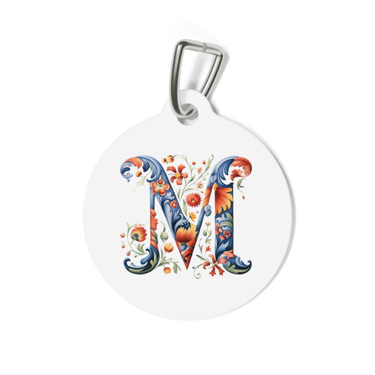 M Rosemaling Alphabet Pet Tag Rosemaling Norwegian Personalized Pet Tag