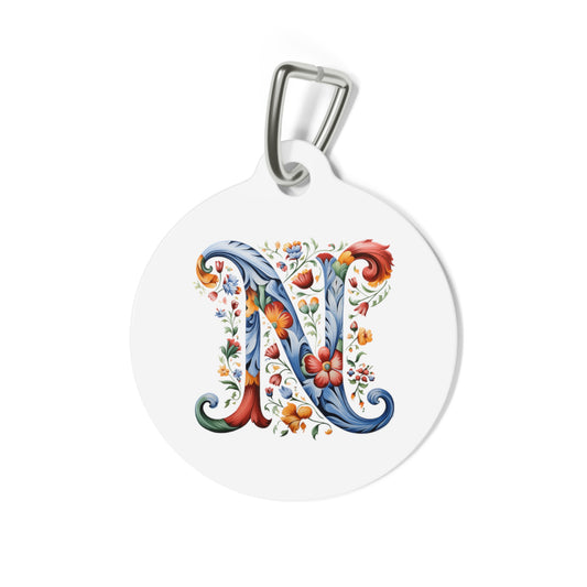 N Rosemaling Alphabet Pet Tag Rosemaling Norwegian Personalized Pet Tag