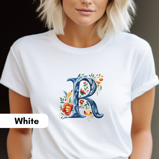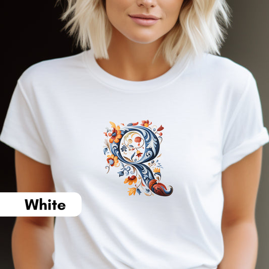 R Monogram T-Shirt – Rosemaling Norwegian Letter Tee