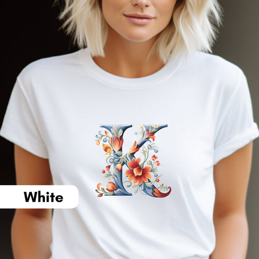 K Monogram T-Shirt – Rosemaling Norwegian Letter Tee