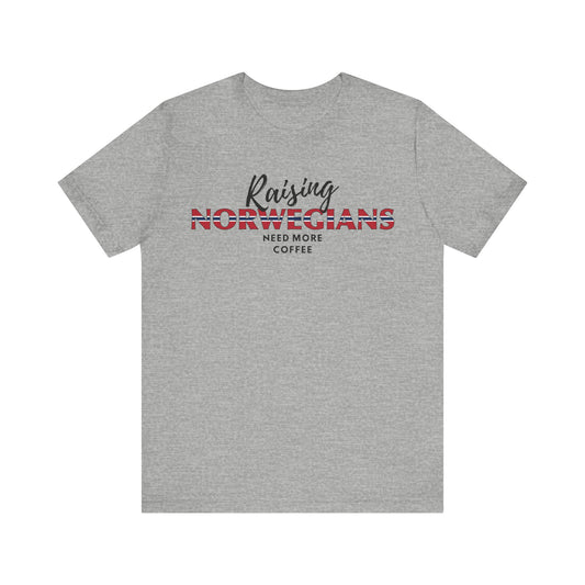 Raising Norwegians Need More Coffee Unisex Jersey Short Sleeve T-shirt Norwegian Parents Tee Norwegian Mother Shirt Norwegian Father Tshirt